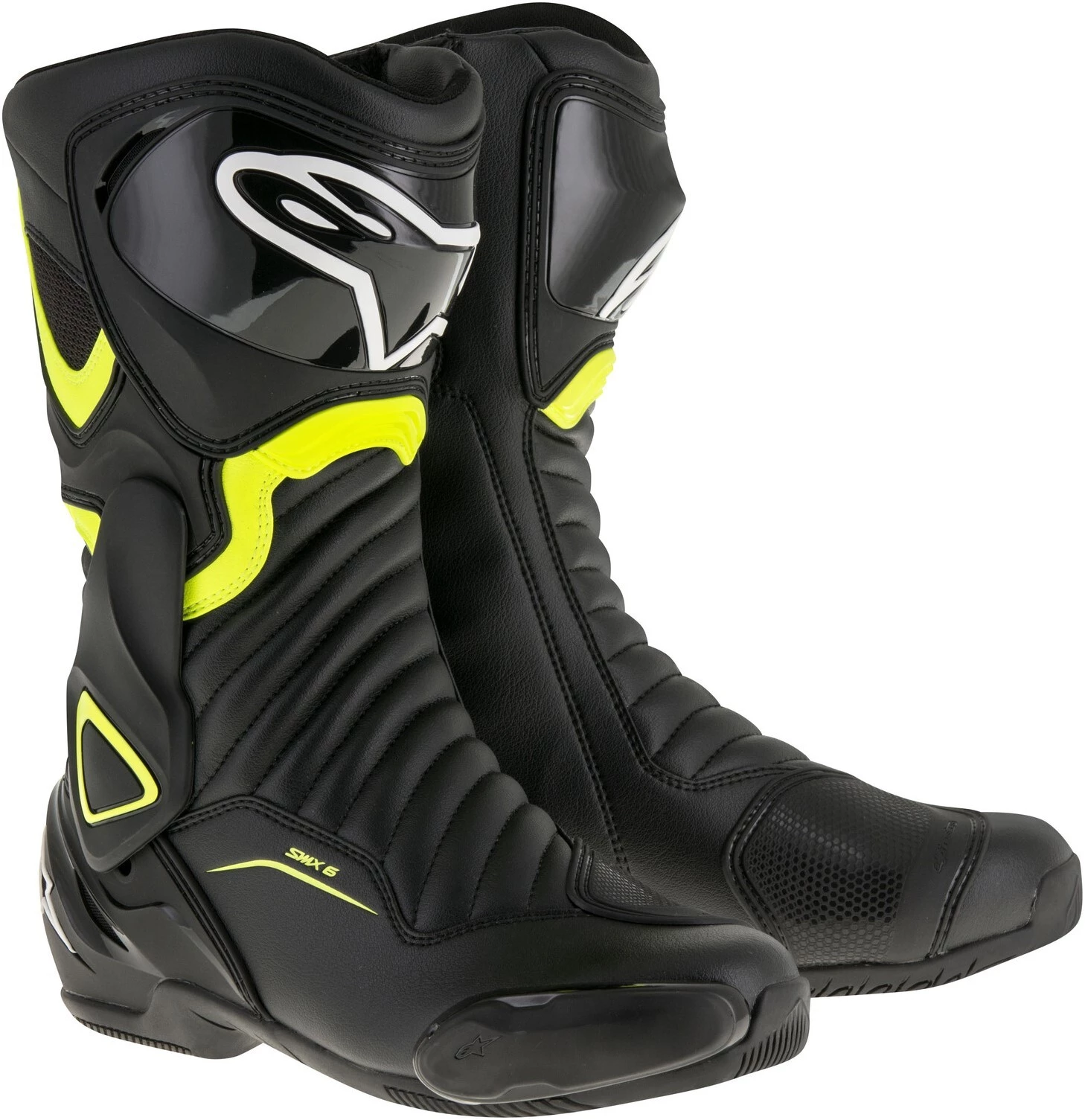 A formidable force on street and track, the second generation Alpinestars SMX 6 Boots have been carefully upgraded without compromising the versatile performance and protection that made the originals such a success. The ergonomics have been refined for increased anatomical fidelity. The accordion stretch paneling has been augmented on the forefoot as well as the back of the ankle for added flexibility and comfort.